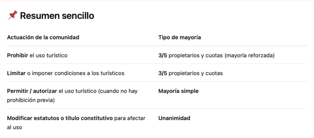 ¿Qué mayoría exige la Ley de Propiedad Horizontal para permitir o prohibir viviendas turísticas?
